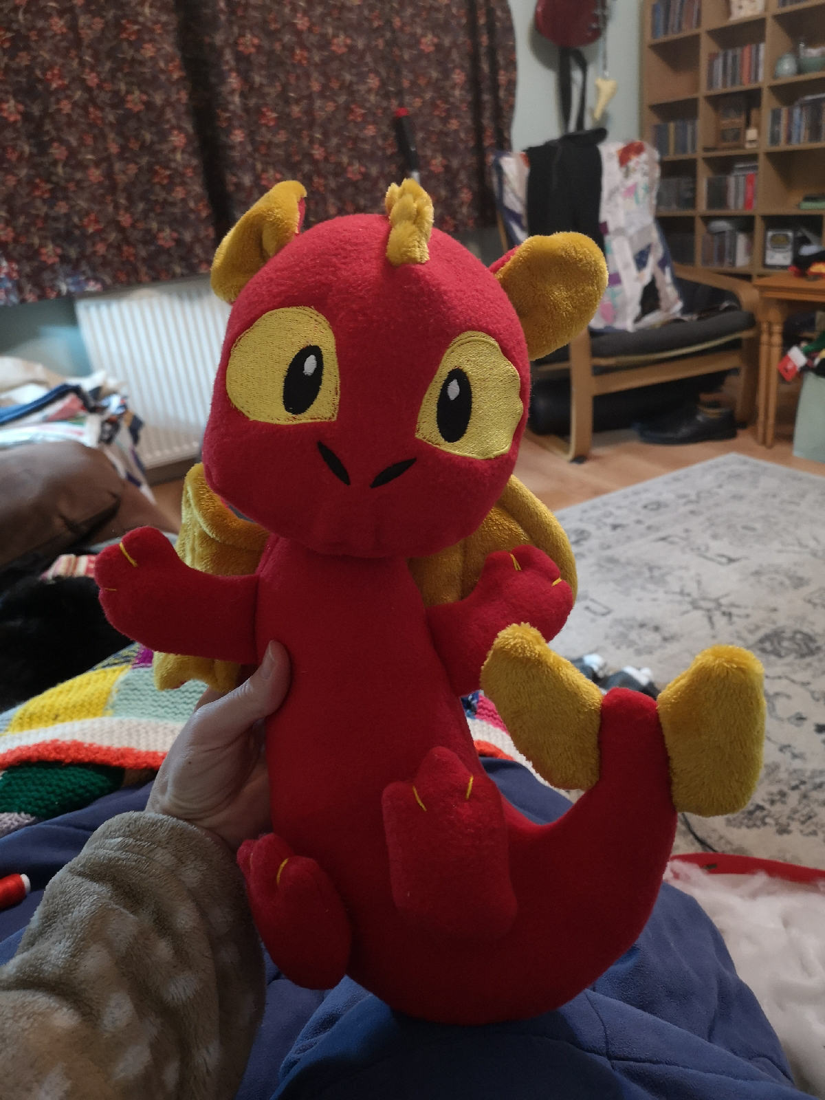 His working name is Cinnabar and soon he'll be in the arms of a 4 year old who loves red. I'm pleased he's going to a good home!